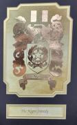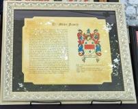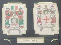 Coat of Arms and Surname with Ornate Frame. Frame colors: gold, silver or black with burgundy trim (pending availability). Please specify desired color when ordering.